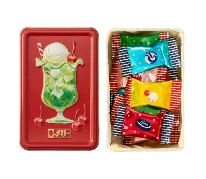 毎年人気のアソートメント缶(18個入1,944円/ミニ9個入1,080円)は、5種類のドリンクモチーフがレトロな缶に詰め込まれ、コレクションしたくなる可愛さ。