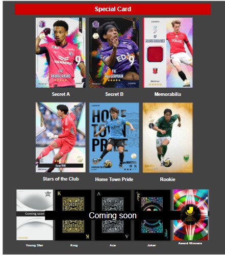 総勢約600名のJ1クラブ所属選手が、★1~5までのレアリティが設定されたデジタルトレカで登場します。