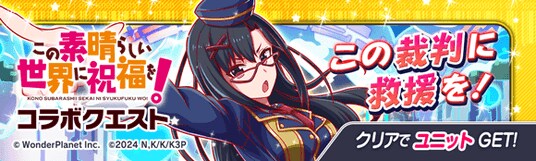 モバイルゲーム事業を行うワンダープラネット株式会社(本社:愛知県名古屋市、代表取締役社長CEO:常川友樹、東証グロース:証券コード4199、以下当社)は、iOS/Android端末向けに配信中の『クラッシュフィーバー』において、2025年11月27日(木)より、『クラッシュフィーバー』×『この素晴らしい世界に祝福を!』コラボの開催が決定したことをお知らせいたします。