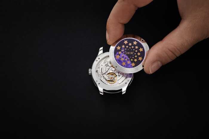 時計の裏蓋にもピンクゴールドのメタリックな星モチーフが施され、細部までこだわり抜かれた逸品です。