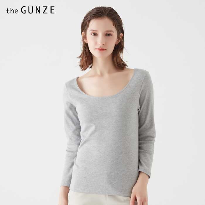 【the GUNZE】冬の綿100% 8分袖インナー(M・L・LL、ホワイト・グレーモク・ブラック・ベールブラウン・ロイヤルベージュ・チャコールグレー、¥2,200税込)は、厚手で肌側は微起毛♡