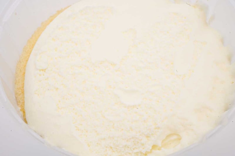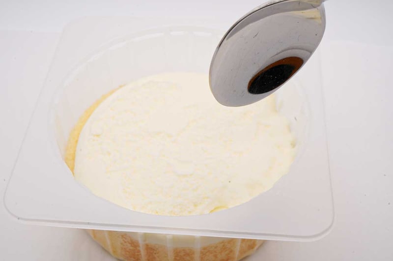 スポンジを覆い尽くし、容器から溢れるほど盛り付けられたクリームのボリュームは圧巻です。