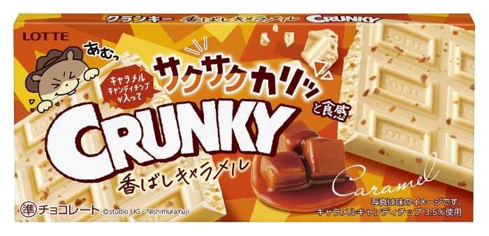 同日発売の「クランキー<香ばしキャラメル>」は、ホワイトチョコにキャラメルキャンディチップを練り込み、クランキー最大の特徴であるサクサク食感に“カリッ”とした心地良いアクセントをプラス。