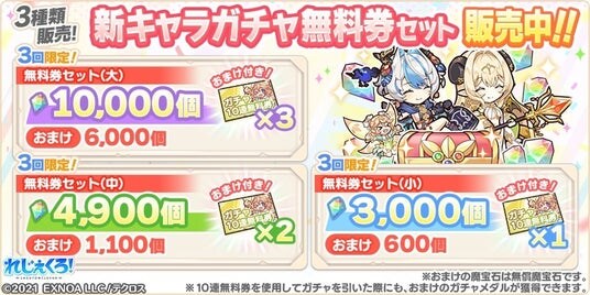・新キャラガチャ無料券セット(大)/(中)/(小)