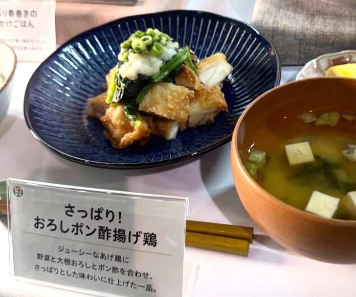 という簡単なのに野菜も摂れる一品。筆者も試食したが、パリパリの揚げ鶏をおろしポン酢でさっぱり食べられて、ほうれん草との相性もバッチリ。味噌汁などの汁物やセブン-イレブンのお惣菜を副菜に添えれば、立派な夕食メニューとなる満足感のあるメニューだ。