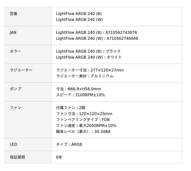 - トリプルファンを搭載した「LightFlow ARGB 360」、デュアルファンを搭載した「LightFlow ARGB 240」