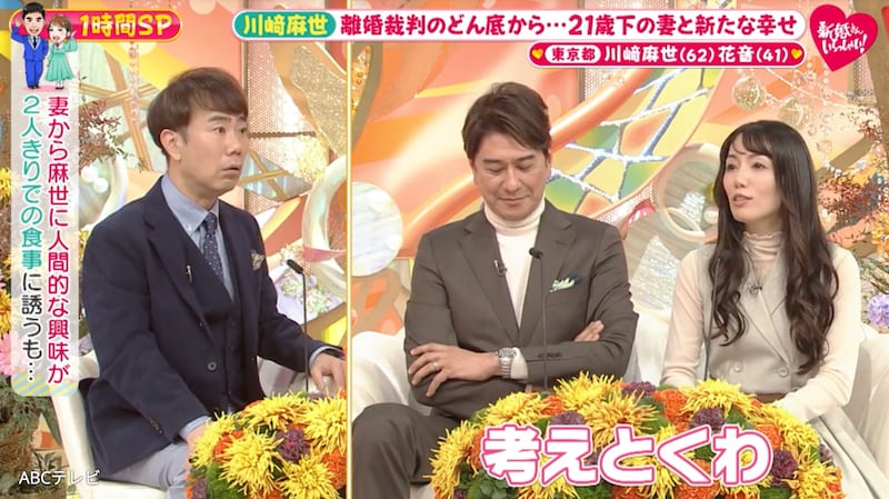 MCの井上咲楽に「(川﨑麻世の)印象がガラッと変わった!」と言わしめた11月16日放送の『新婚さんいらっしゃい!』。この感動のスペシャル回は、無料動画配信サービスTVerで!