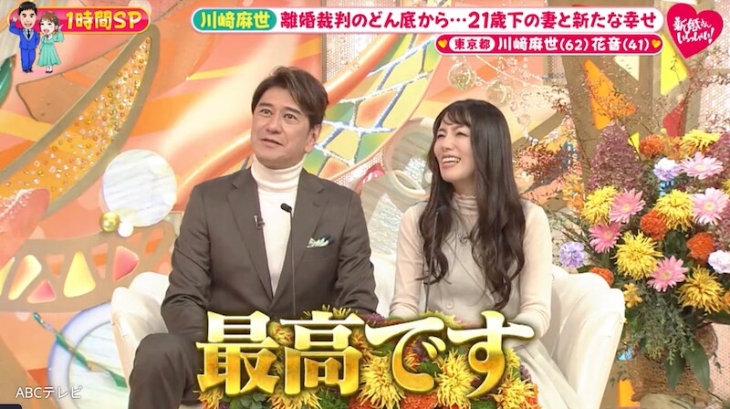 11月16日(日)の『新婚さんいらっしゃい!』 1時間スペシャルに登場したのは、俳優の川﨑麻世さんと料理研究家の花音さんご夫妻!