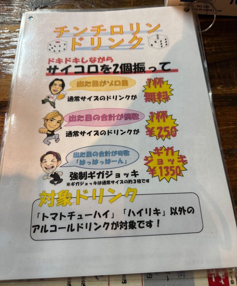 サイコロでゾロ目が出たら無料の「チンチロリンドリンク」といった遊びもアリ。