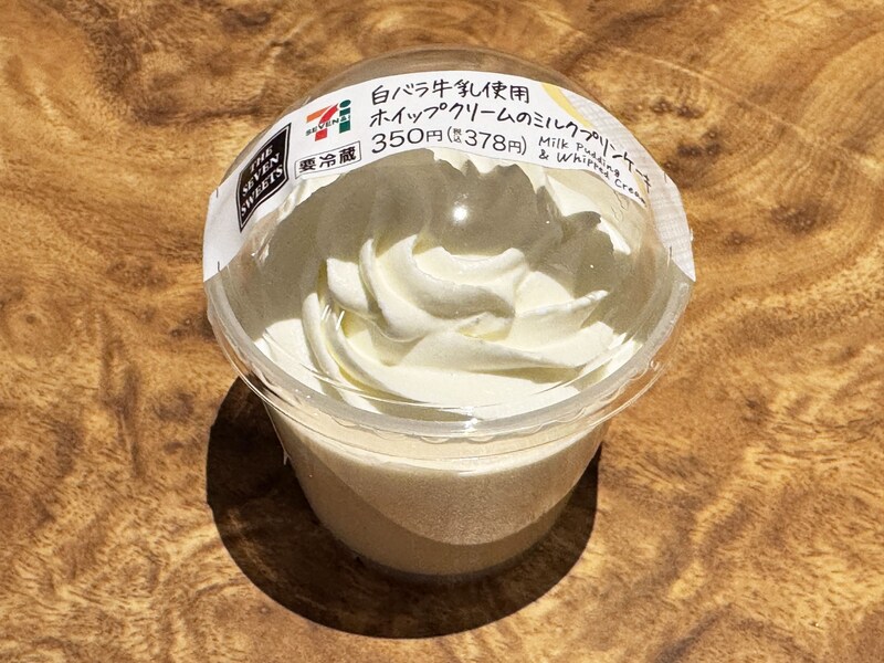中国地方のセブンイレブンで見つけた「白バラ牛乳使用 ホイップクリームのミルクプリンケーキ」が誠に結構至極であった。白バラ牛乳を使用しているという時点で極致に達している。
