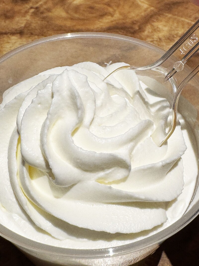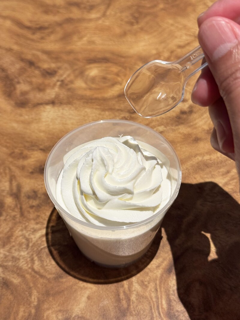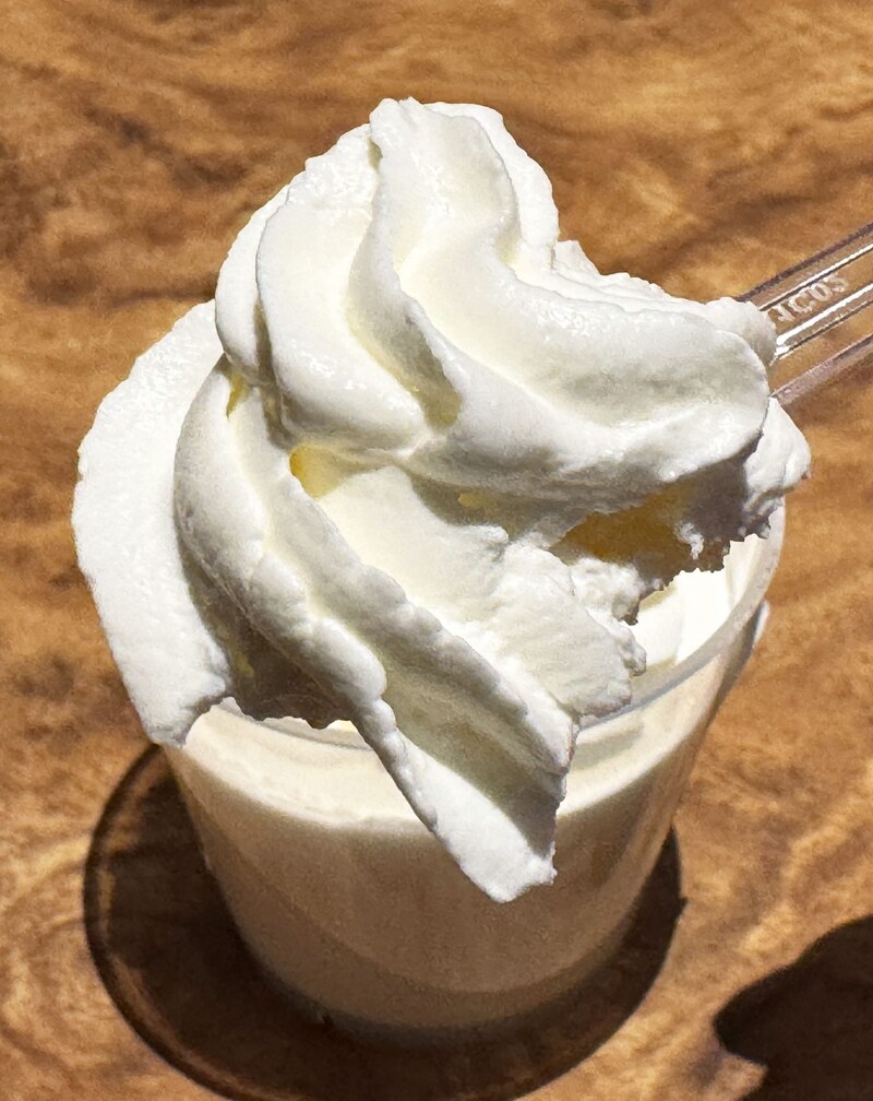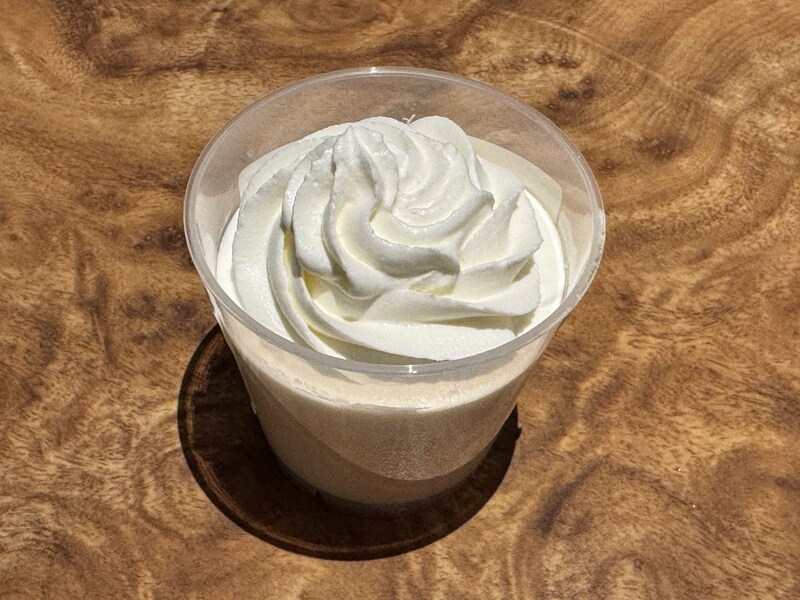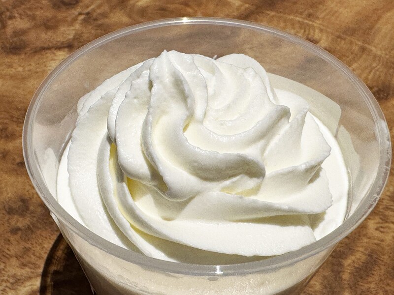こういうスイーツ、欲しかった人は多いと思われる。プリンアラモードやショートケーキのフルーツがないタイプ。それでいて、クリームがたっぷり大容量。まさに、クリームとプリンに集中して楽しめる秀逸なるもの。