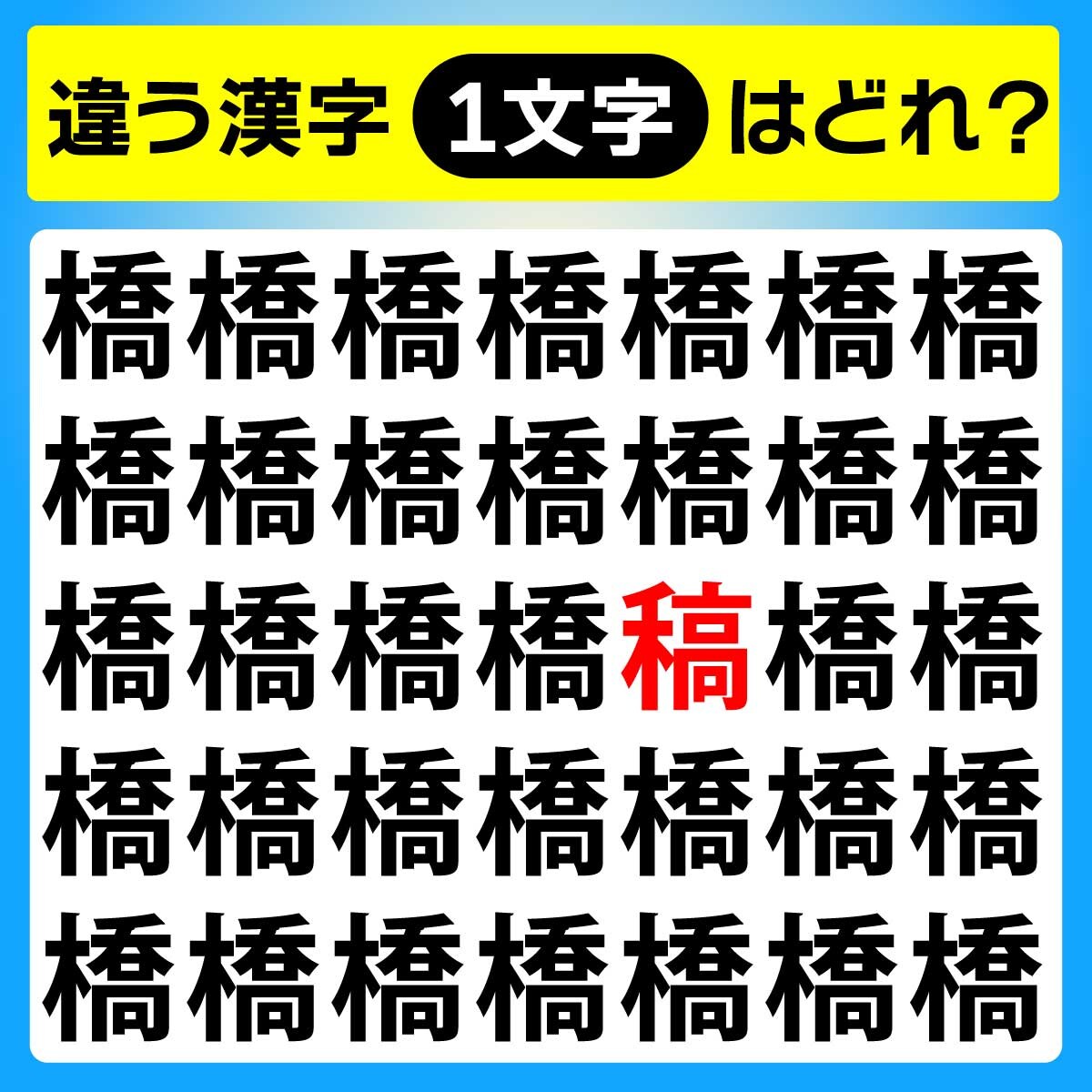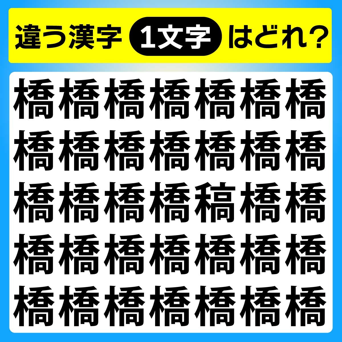 毎日配信中「毎日脳トレ」の時間です! 本日のクイズは「漢字のまちがい探し」に挑戦♪ 同じ漢字が並んでいるように見えますが、実は1つだけ違う漢字が……。よ~く探してみてください!