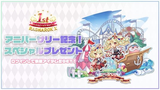 冒険がもっと楽しくなるイベント盛りだくさんの「ラグナロク遊園地」。いつもプレイしてくださっている方も、しばらくお休みしていた方も、この機会に初めてプレイする方も、『ラグナロクX』の1周年記念イベントをどうぞお楽しみください。