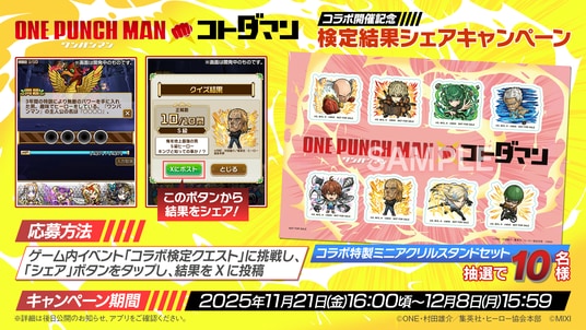 ■アニメ「ワンパンマン」×「コトダマン」コラボ各種キャンペーンを開催!