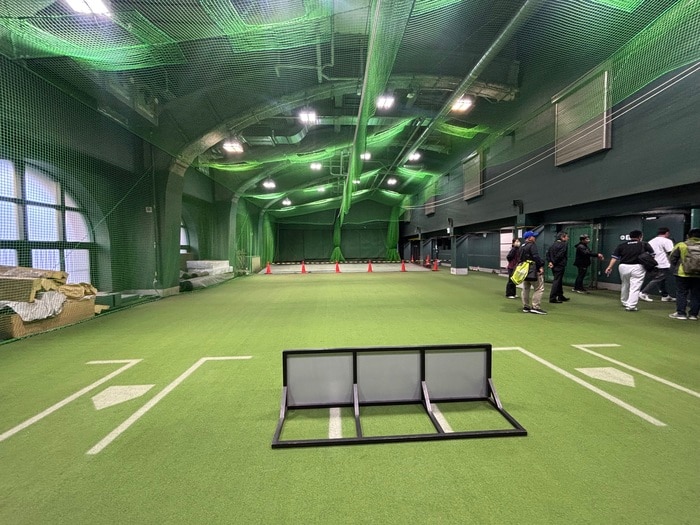 3塁側ブルペン、普段はなかなか入れない空間に、子どもたちとご家族も大興奮。テレビ中継で見たことがあるあのワンシーンの裏話など、この場にきて目で見て楽しみながら、選手らのユニフォームにバットなどをお借りして、記念撮影などを楽しみました。