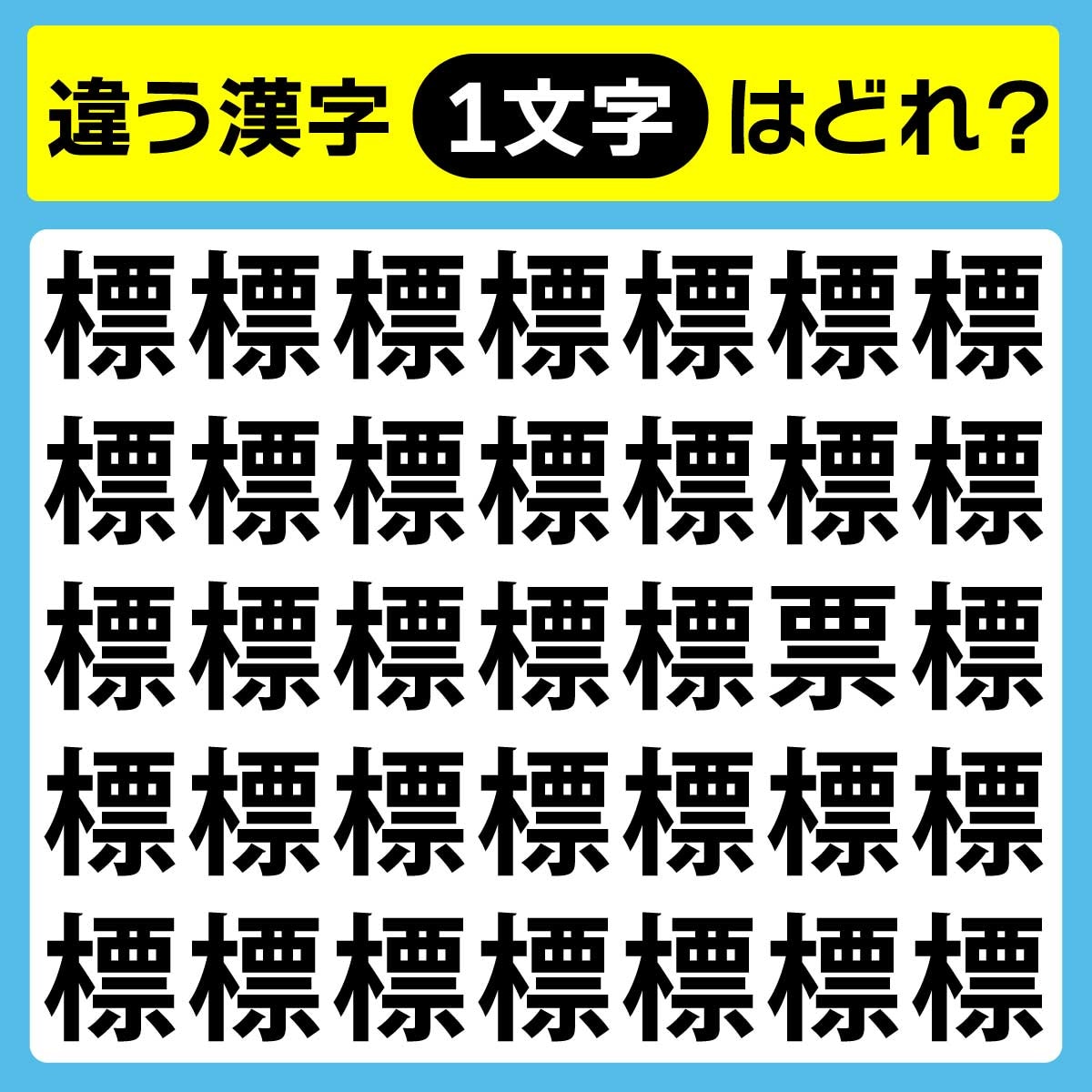違う漢字は、上から3列目、右から2番目の文字。