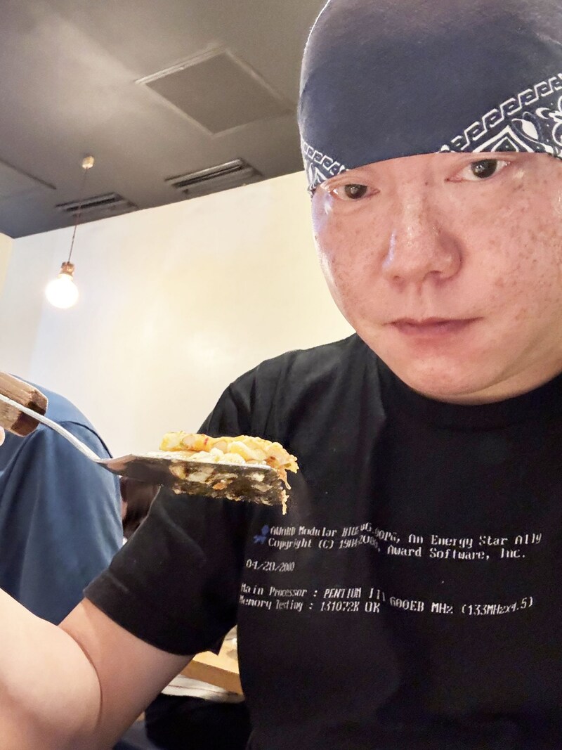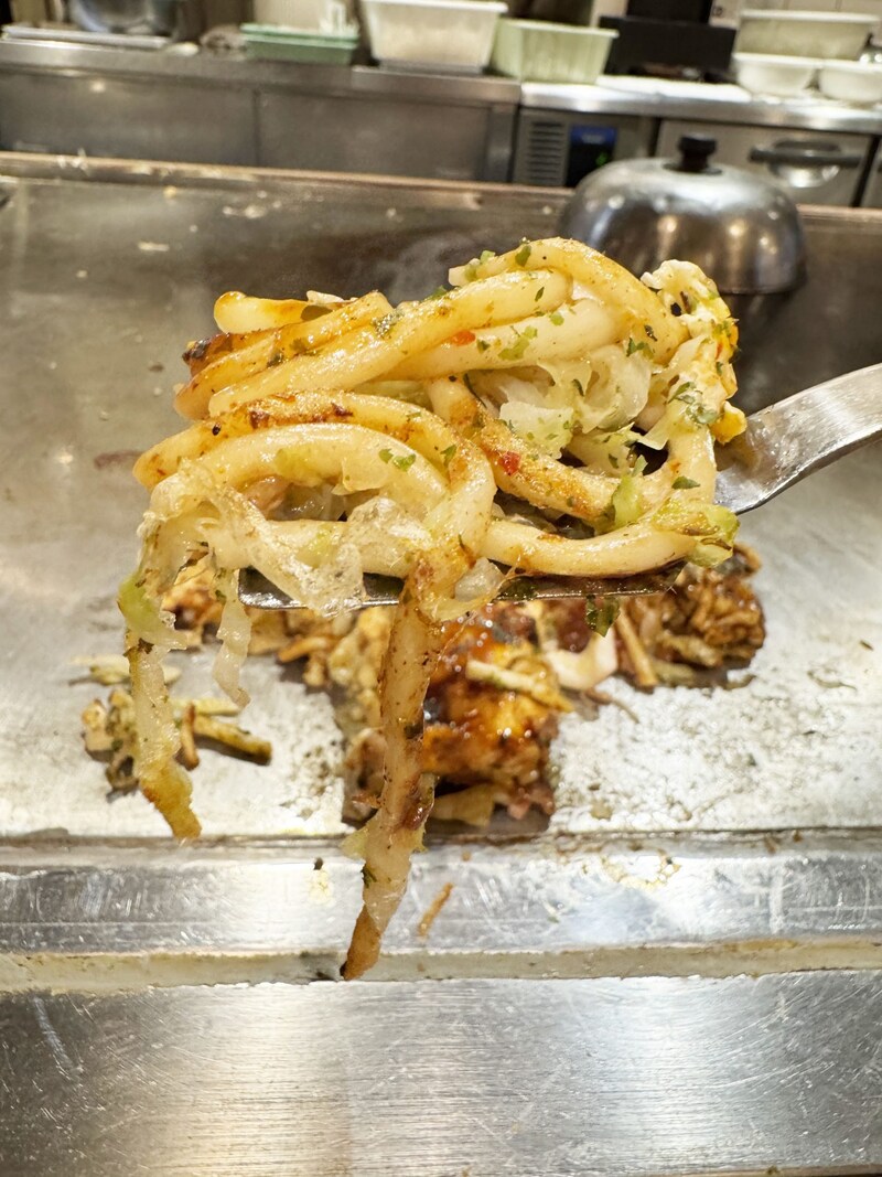 う、うまい! ちょっと、かなりうまいですよこれ。主観的な表現になってしまいましたが、うまいです。キャベツと生地、そしてうどんが、ソースがかかっていない部分も美味なのです。