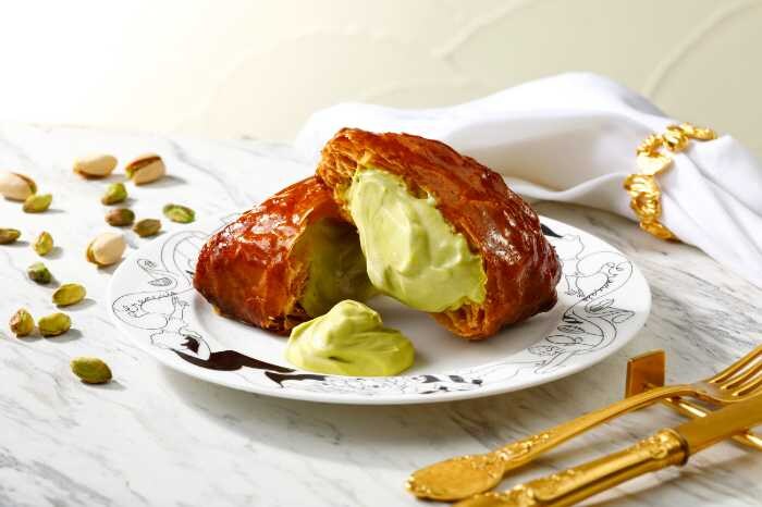 2025年11月16日(日)から平日限定で登場する〈フランセパニエ ピスタチオ〉は、手作業で丁寧に折り込まれたパイ生地が魅力。