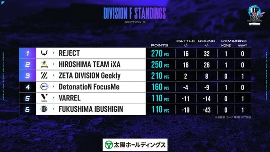 Division F 1位の座へ着実に歩を進めた「REJECT」の最終節の活躍に期待したい。