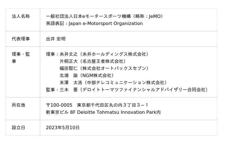 一般社団法人日本eモータースポーツ機構(JeMO)法人概要