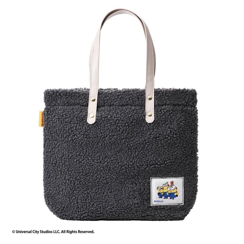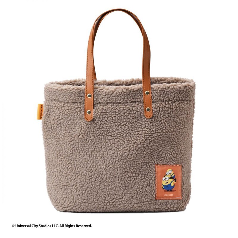 冬にぴったりの柔らかなボア生地に、ミニオンのかわいいワッペンを添えたアイテム。