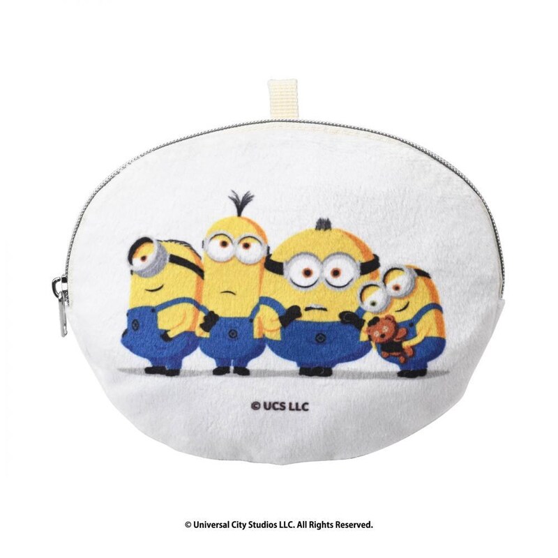 ポーチと同じデザインで、ページをめくるたびに、仲良く並ぶミニオンたちの姿が見える、心が和むアイテムです。