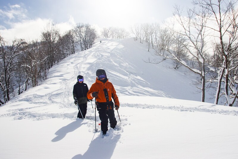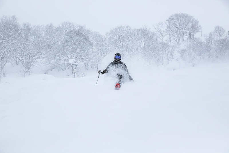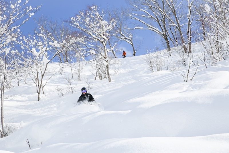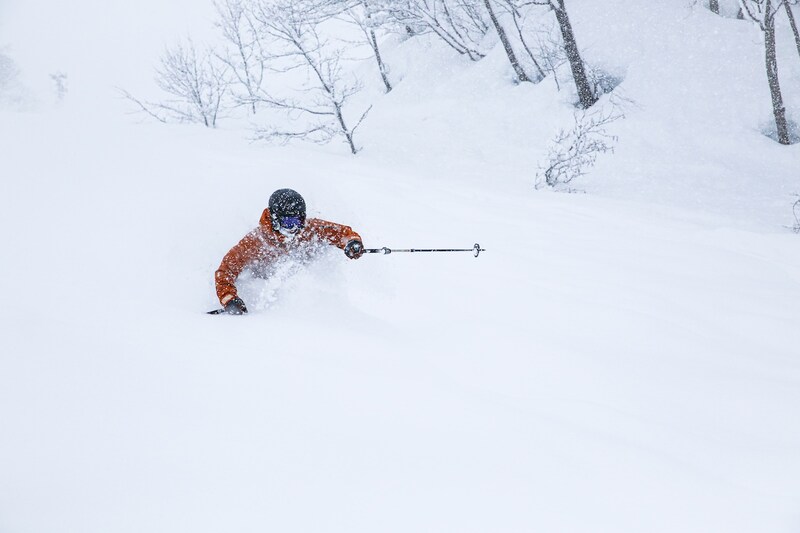 このスキー場の魅力はなんといっても雪の多さです。雪がたくさんあると、ツリーランエリアや非圧雪ゾーンなど、楽しく滑れる場所がたくさんあるんです。とくに僕は、ジャイアントやチャンピオンなど、パウダーの急斜面が僕は1番好きなんです。滑りごたえがある急斜面に雪がたくさん積もった日はもう堪りません。だから今日は最高ですね! 急斜面にトラックが入ってきてもツリーランエリアが残っているし、パウダーを滑れる場所がたくさんあるんです」