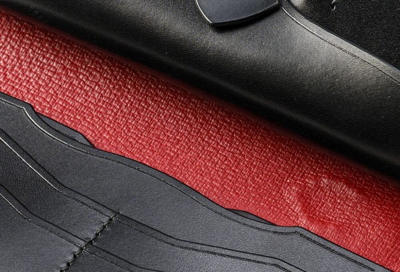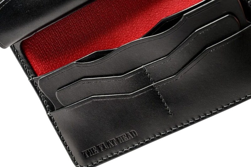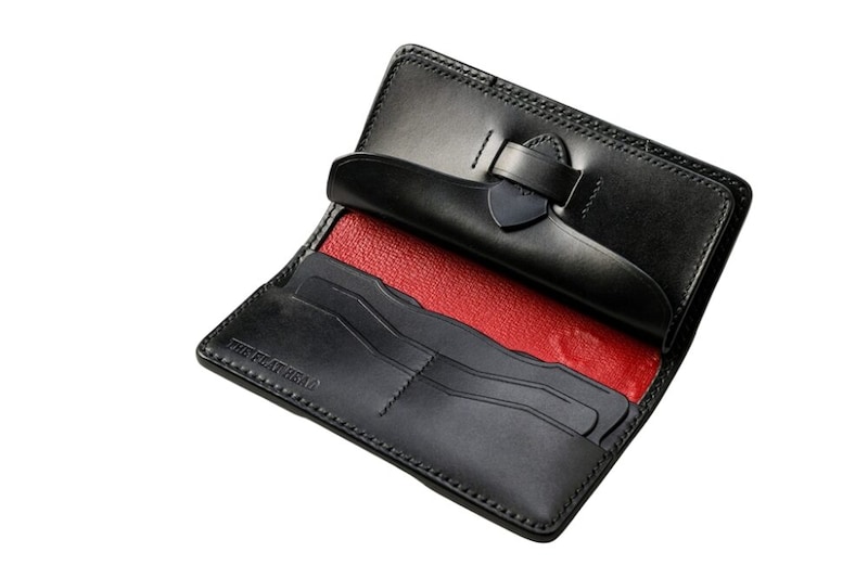 札入れ部分は豚革で補強してあります。カラーはフラットヘッドオリジナルの鮮やかなレッド。表面が滑らかに仕上がっているので、札などの出し入れがしやすくなっています。