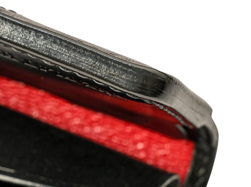 レザー製品の品質を左右するコバの処理。ここでレザーグッズの良し悪しが決まると言っても過言ではありません。複数枚が重なる箇所をまるで一枚の革のように見えるのが良品の証。