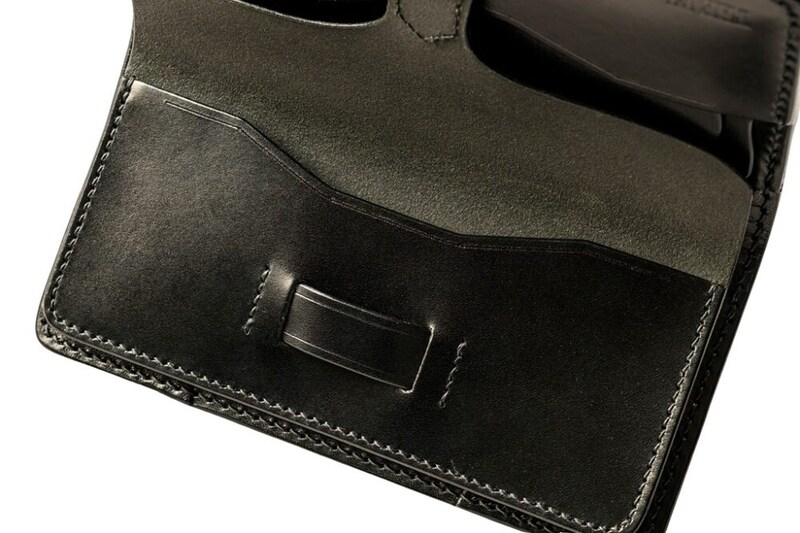 多脂革を薄くすいた材料を組み合わせたカード入れ&札入れ。コシのある革のため、型崩れしにくいのが特徴です。