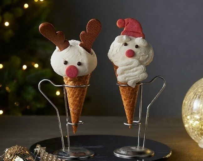 ロージーズ ベーカリー(左上)「ミニクリスマスケーキ」/直径10×高さ5cm(2,160円)、(右上)「ジンジャーブレッドマン」(1個/497円)、(左下)「ミンスパイ」(1個/497円)、(右下)「クリスマススコーン」(1個/464円)※販売期間:2025年11月19日(水)~22日(土)