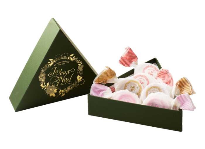 ツリーをイメージしたクリスマス限定パッケージで、贈り物やテーブルを華やかに彩る冬のスイーツです。