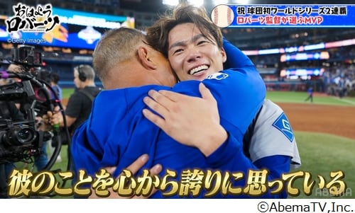 番組は今回、MLBワールドシリーズ2連覇達成から1週間後、サンディエゴにあるロバーツ監督の自宅でインタビューを実施。ワールドシリーズ第7戦、前日に100球近くを投げながら再び登板し、チームを優勝に導いた山本由伸投手の“伝説の連投”について、ロバーツ監督は「第6戦のあと『第7戦で投げられるよう君を準備させる』と由伸に言った」と回顧。「矢田修センセイが力になって体とメンタルの両方を整えてくれた。由伸はトレーニングスタッフに『投げられる』と伝えていた」と振り返り、「由伸がどれだけ投げられるかは分からなかったけど、プレーオフ前に『負けるという選択肢はない』と言っていた」と準備の背景を明かす。