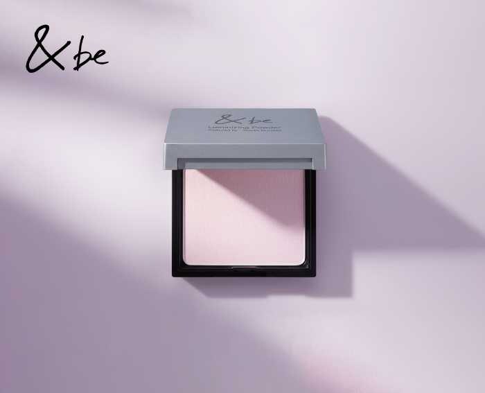 &beルミナイジングパウダーは、しっとりやわらかなテクスチャーで肌に溶け込むようにフィット。