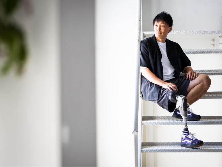 小栗大地(以下、小栗): 今では欠かせない義足との出会いは、まだ足があった頃です。僕はアルペンスノーボードをしていて、よくニュージーランドで練習していたのですが、お世話になっていた宿でオーナーの知人だという、日本人の高校生スキーヤーに出会いました。片足義足だったその高校生は、ゲレンデにいるときは“一本足”。片足で急斜面のコースをギュンと連続で切り返していく姿が衝撃的でした。たとえ自分の足がなくなっても、『こいつには勝てないから、スキーをやることはないな』と少し思ったりして。まさか自分が本当に義足生活になるとは思ってもいませんでしたけど……。