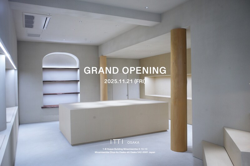 2025年11月21日(金)、レザーブランド「ITTI」の初の冠店舗が大阪・南船場にオープン。東京・富ヶ谷の「ICHI GALLERY」に続き、同ブランドの新たな表現拠点として“日常に宿る上質さ”を追求したレザーグッズを展開します。