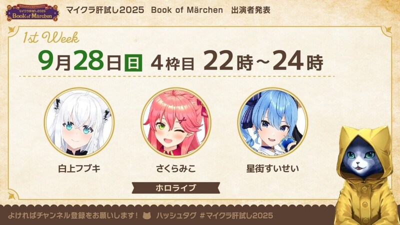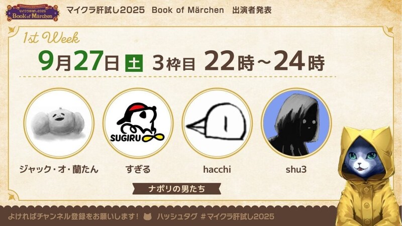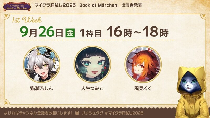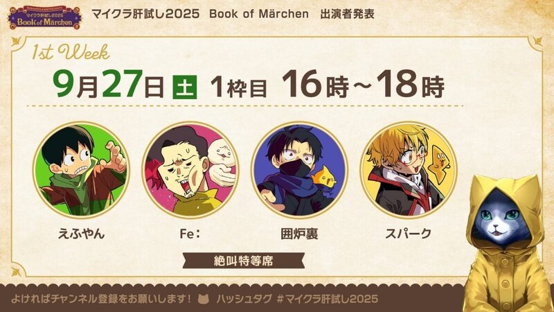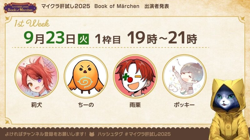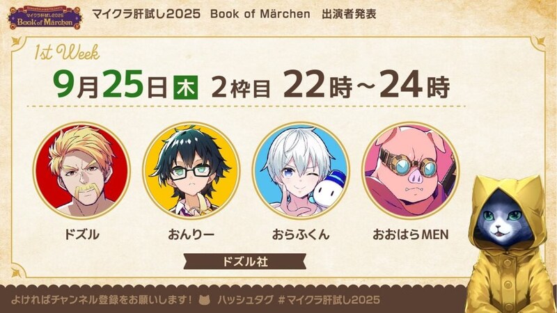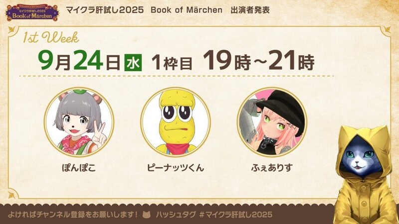 今回は、先日の出演者発表配信は同接2万5000人を超え、Xの国内トレンドにも入った大注目のイベント「マイクラ肝試し2025 -Book of Märchen-」のタイムスケジュールをご紹介します。