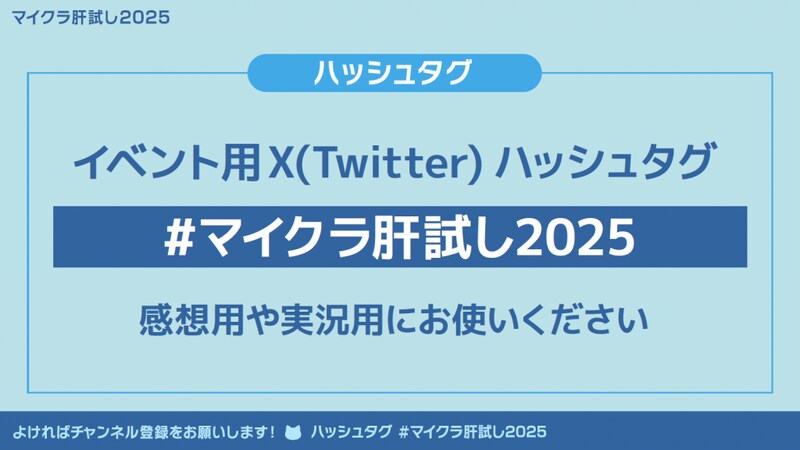 今年は、『#マイクラ肝試し2025』感想用、実況用ハッシュタグになりますので、たくさんポストして一緒に盛り上がりましょう!