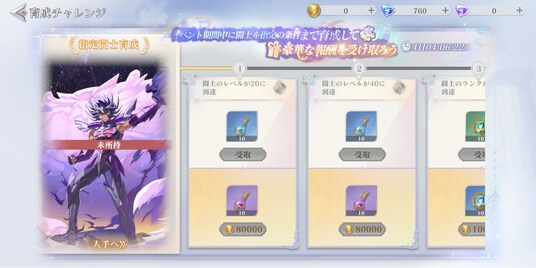 イベント期間中、闘士「冥衣・デスマスク」を指定の条件まで育成すると、豪華報酬を受け取れます!