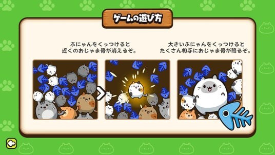にゃんてん島の猫たち「ぷにゃん」と楽しむ、ぷにぷにはじけるパズルゲーム!