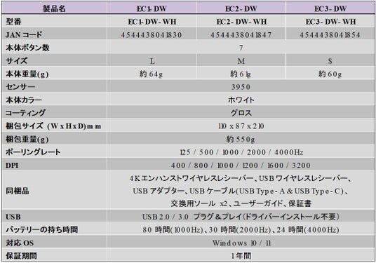 EC3-DW White :https://zowie.benq.com/ja-jp/mouse/ec3-dw-glossy.html