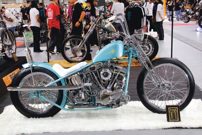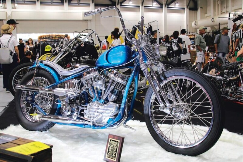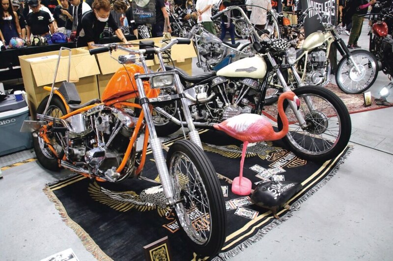 神戸のチョッパー好きから支持を集める「シウン クラフトワークス」。今回のショーでは同店がこれまで製作してきたオールドスクールやロングフォーク、フリスコなどさまざまな車両を計14台(!!)展示。一台一台仕様の異なるチョッパーは多くの目をひいた。