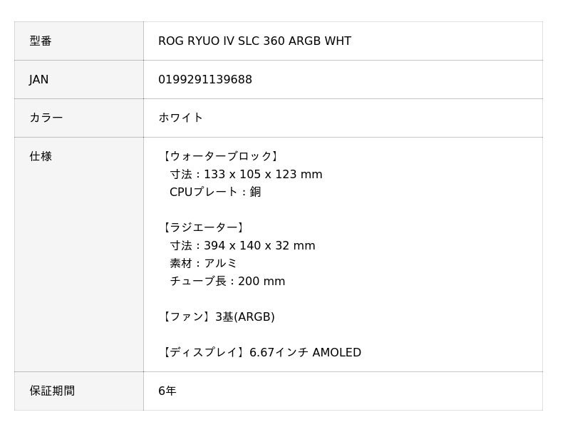 ROG RYUO IV SLC 360 ARGB WHT | ASUS (エイスース) ホワイトカラー オールインワン簡易水冷CPUクーラー (フルカラー2K AMOLED、ARGBトリプルファン)