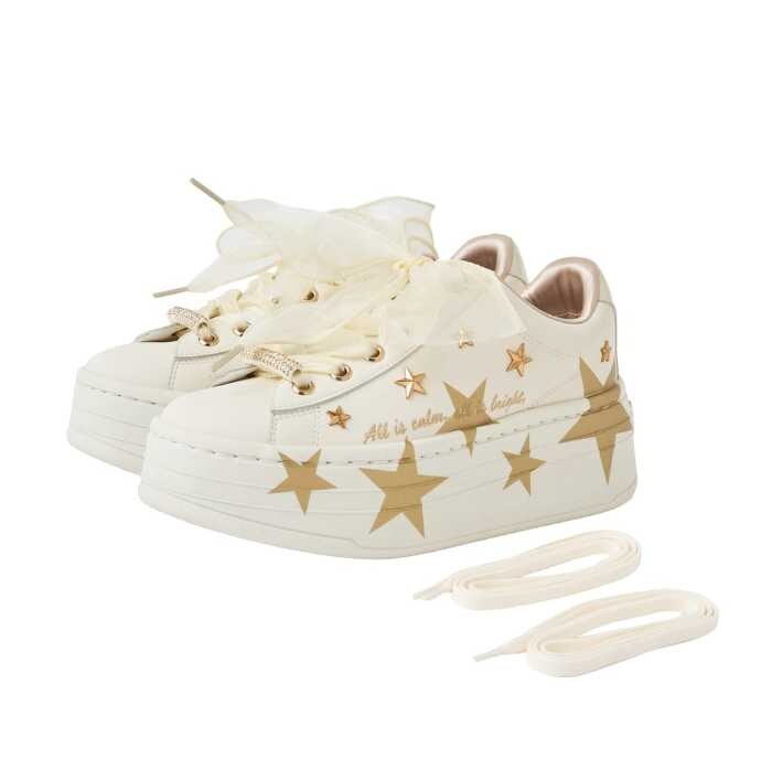 星モチーフや繊細な装飾が足元を華やかに導くプラットフォームタイプ。高さがありながら軽やかな履き心地で、冬の装いを品よく盛り上げます。