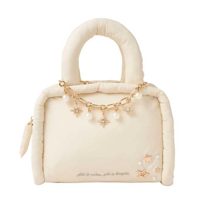 ふわふわのパフハンドルと、気分に合わせてアレンジできるチャームが魅力の限定バッグ。可憐なホワイトクリスマスの雰囲気をまとった特別感のある一品です。