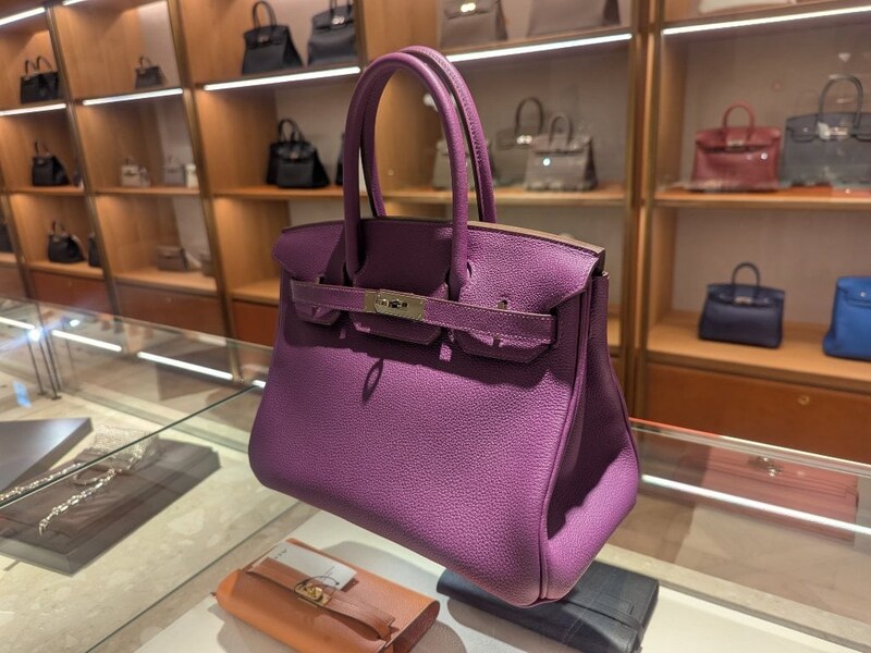 ALLU OMOTESANDOの他のフロアにはたくさんのバーキンが売られていました。気になった紫のバーキンの価格を聞いたら「193万円です」とのこと。ヴィンテージ市場では、黒や茶色などベーシックカラーの方が人気で数百万円以上するそうです。また、サイズが小さい方が高くて、大きいものは100万円前後で買えることもあるとか。14億7000万円のバーキンを見たあとなので、100万200万は端数に思えてきます。