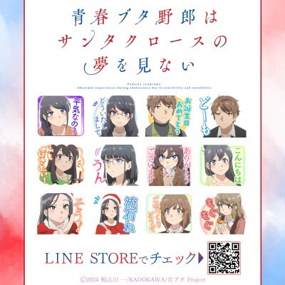 TVアニメ「青春ブタ野郎はサンタクロースの夢を見ない」初となるLINEスタンプがインクルーズの販売アカウントより配信開始!是非、LINEスタンプでもTVアニメ「青春ブタ野郎はサンタクロースの夢を見ない」の世界観をお楽しみください。