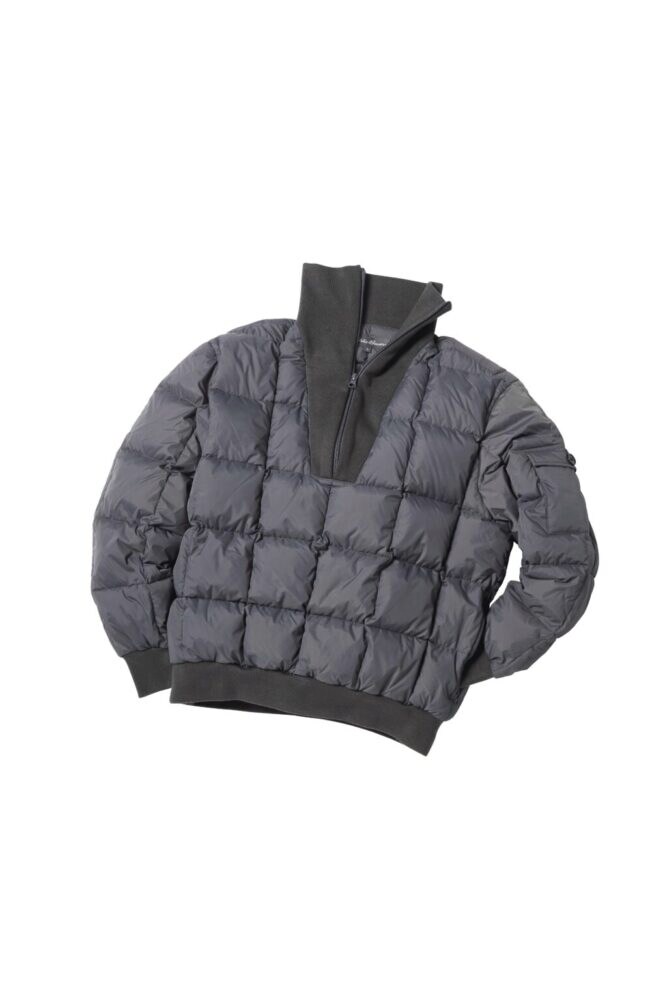 ヴィンテージファンにはおなじみの名作[ダウン・プルオーバー]。[カラコラム]や[スカイライナー]と並び古着市場でも高い人気を誇るモデルだ。今回はヴィンテージの中でも数の少ない希少なグレーカラーを採用し、ナイロン地やリブの色味はアーカイブをもとに徹底再現。インナーとしてもアウターとしても活躍する万能ダウンが仕上がった。3万9800円