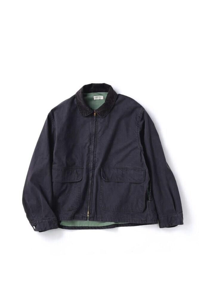 ライトオンスのダック⽣地を使⽤したハンティングジャケット。着用時に丸みを帯びるスリーブが特徴のひとつ。裏地のカラーもさりげなくアクセントになる。4万2900円(ユナイト ナインTEL03-5464-9976)