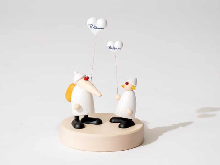 ハート型バルーンを持つサンタとミセスサンタがセットになった特別アイテムで、円形ウッドベースつき。クリスマスインテリアに優しく温かなムードを添えてくれます。